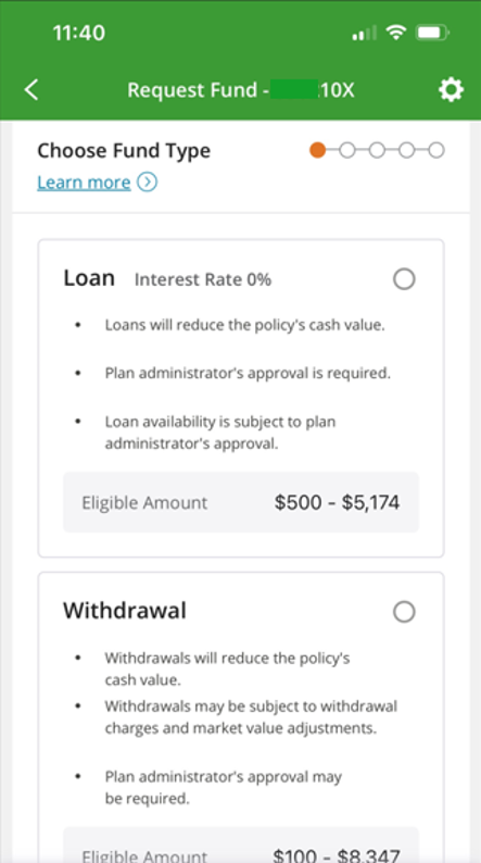 Customers using the Mobile App will now be able to request loans and withdrawals through this easy guided experience.