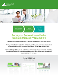 The Premium Increase Program (PIP) is designed to reward your good client service.