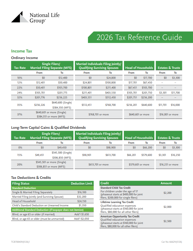 The 2026 Tax Reference Guide is now available and is an excellent resource to support your client and prospect conversations.